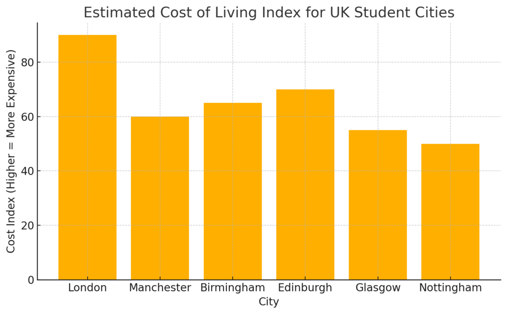 Birmingham | University of Birmingham, Aston University | Moderate | Central location, diverse community, cultural events | Retail, hospitality, part-time roles |