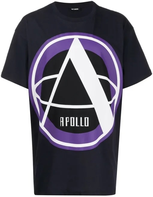 This standout piece features rebellious imagery inspired by underground youth movements. Raf’s love for punk and counterculture is evident in its slouchy fit and moody, provocative graphics.